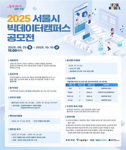 서울시는 데이터 기반의 사회혁신 아이디어를 발굴하고 시민 참여형 정책 기반을 확대하기 위해 ‘2025년 빅데이터캠퍼스 공모전’을 개최